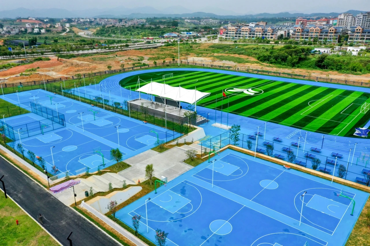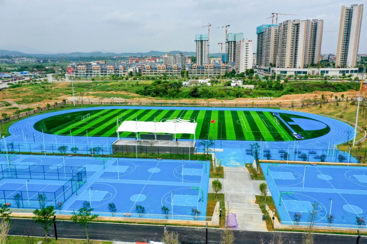 广西百色天立学校混合型塑胶跑道、人工草坪、硅PU球场工程!