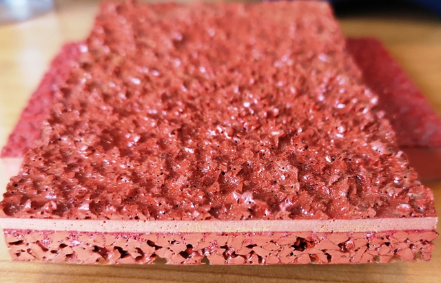 复合型塑胶跑道与混合型塑胶跑道相比,复合型塑胶跑道的造价要比混合型塑胶跑道的造价一般要低15%左右,其外观与混合型塑胶跑道一样,并具有弹性好、强度高、耐磨、防滑、耐低温、施工方便、美观大方、防震隔音、粘接力强,经久耐用等特点。