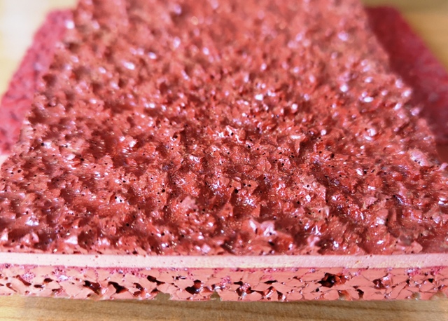 复合型塑胶跑道是分四次施工完成。复合型塑胶跑道1、底层为EPDM橡胶颗粒与单组份胶水经过机械搅拌,采用机械摊铺机进行施工,2、底层摊铺完成后,采用EPDM胶粉与聚氨酯材料进行机械搅拌,采用人工进行铺装方式,3、待第二层施工完成后,进行纯聚氨酯材料采用人工铺装方式,4、配合第三层施工,待浆料不完全成胶时铺撒专用跑道红色胶粒。